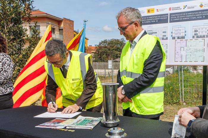 - El secretari general del Departament de Territori, Habitatge i Transició Ecològica ha participat avui en l’acte de col·locació de la primera pedra de 24 habitatges protegits de lloguer assequible a Cardedeu