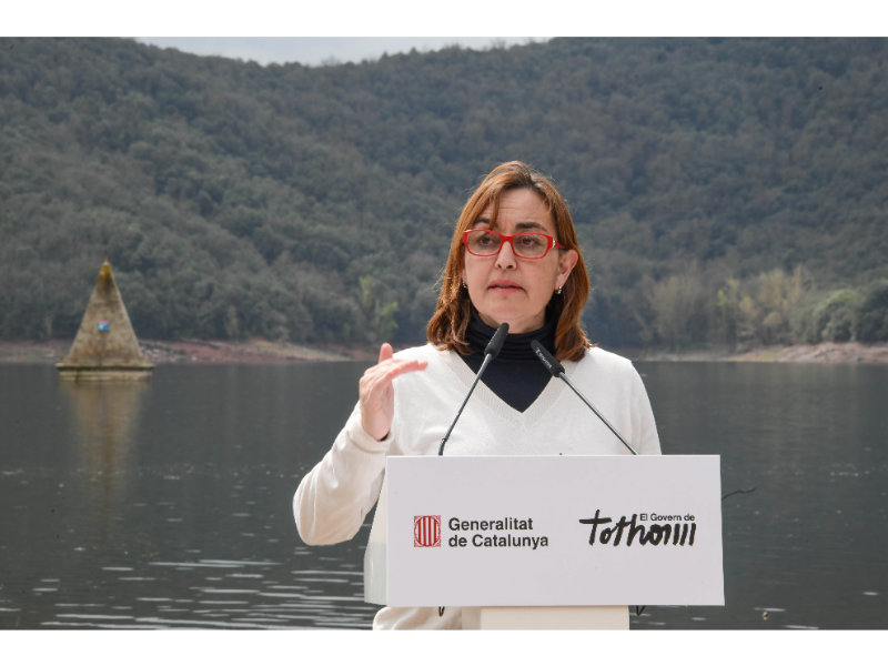 La consellera ha afirmat: “Permeteu-me que faci un petit repàs d’aquests últims mesos hem viscut una sequera; de fet no l’abandonem del tot, hem anat encadenant fins 56 mesos de sequera; el període més gran de sequera dels últims 200 anys a Catalunya; 56 mesos per sota de la mitjana de pluviometria que teníem registrada a Catalunya. Recordo que es va activar el setembre del 2021 quan els nivells estàvem al 70% es va començar a aplicar el pla de sequera en la limitació dels consums i amb l’increment progressiu d’aigua desalada i aigua regenerada. Des de principis de març amb les pluges hem passant del 31 el 64% de capacitat en els embassaments. Tenim un increment de reserves superiors 230 hm³ i en els propers dies encara veurem increment d’aquest volum d’aigua perquè els rius encara baixen alts”.