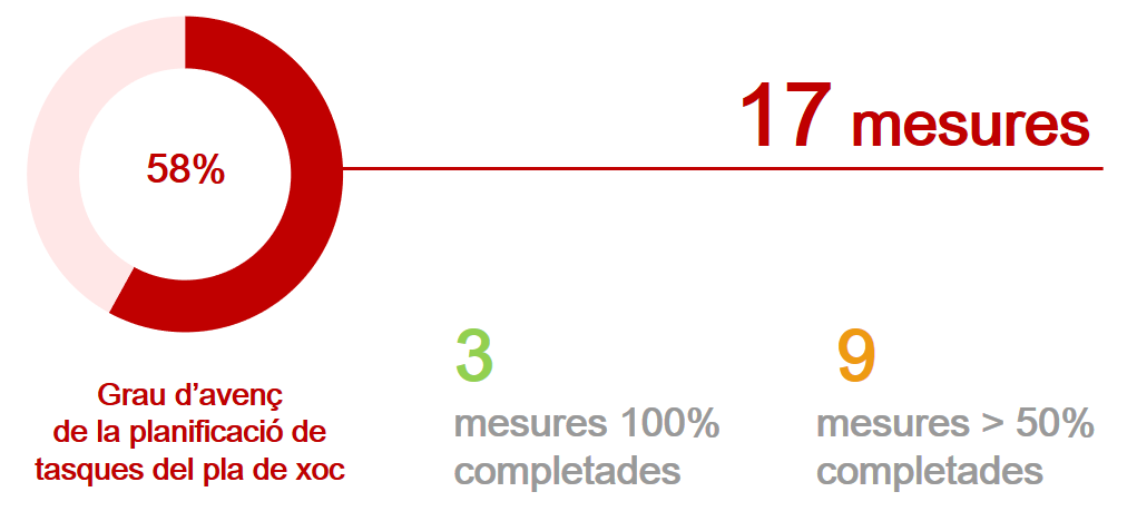 A dia d’avui, el grau d’avenç de la planificació de les tasques derivades de les mesures del pla de xoc és del 58%.