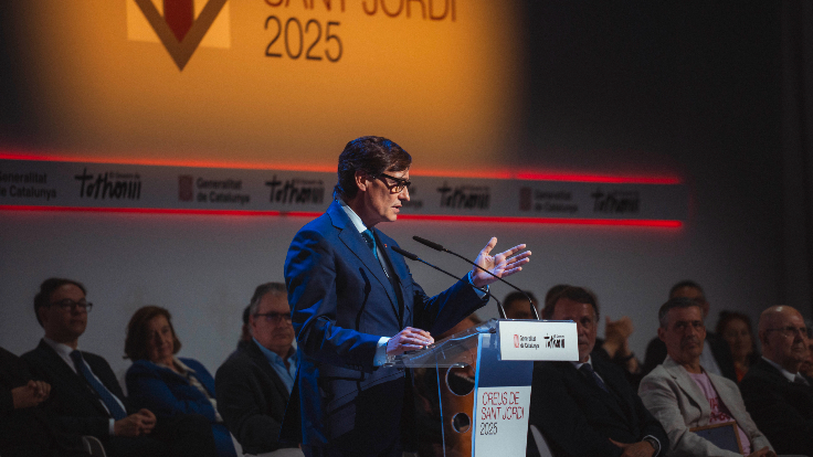 El president de la Generalitat, Salvador Illa, ha lliurat aquest vespre les Creus de Sant Jordi al Museu Nacional d’Art de Catalunya, on ha afirmat que “són un immens gest de gratitud i de reconeixement a les persones i entitats que heu contribuït, i contribuïu, a fer una Catalunya millor”. “Dir-vos a tots els guardonats i guardonades, gràcies. Un ‘gràcies’ del conjunt de la societat catalana pronunciat amb una sola veu”, ha expressat el president Illa.