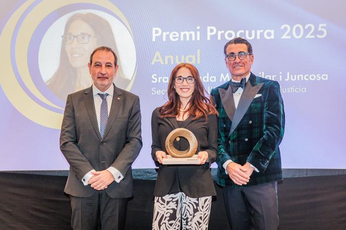 La secretària per a l’Administració de Justícia del Departament de Justícia i Qualitat Democràtica, Iolanda Aguilar, ha estat guardonada aquest vespre amb el Premi Procura Anual 2025 atorgat pel Col·legi de Procuradors dels Tribunals de Barcelona. L’entitat col·legial l’ha reconegut per “haver afavorit la col·laboració institucional i professional entre el Departament de Justícia i Qualitat Democràtica i la resta d’operadors jurídics, molt particularment el col·lectiu de procuradors”.