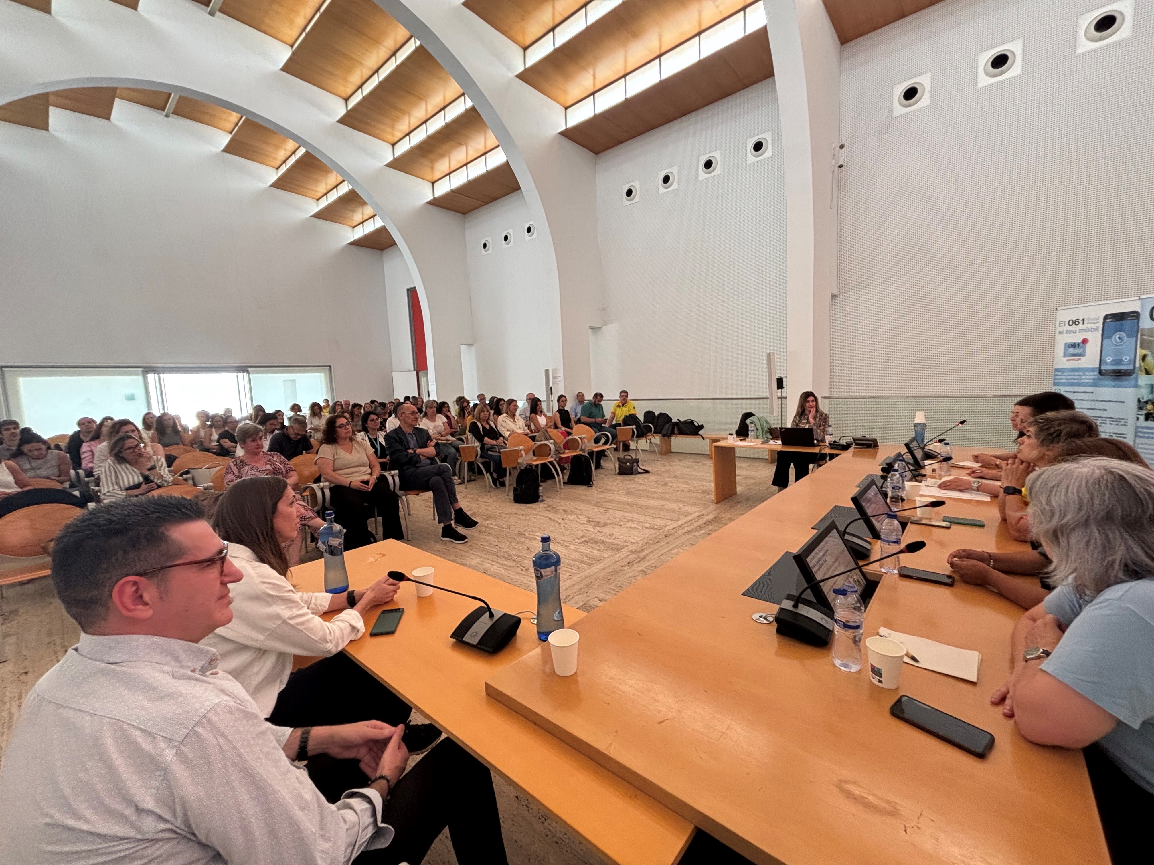 La jornada d’ahir és fruit d’aquesta col·laboració i neix com a espai de trobada per posar en comú la situació actual, les experiències, eines i reptes de forma compartida. Va començar amb la benvinguda d’Alfons Martínez, cap territorial del SEM a la Metropolitana Sud, seguida de la intervenció de Catalina Serra, cap del 061 Salut Respon, que va exposar com aquest recurs s’integra en el circuit assistencial per oferir una atenció continuada a persones amb necessitats complexes.