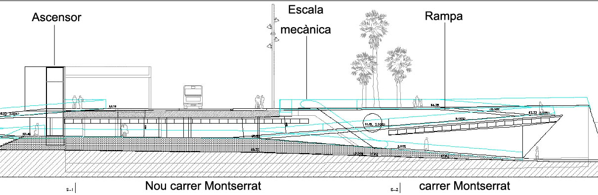 En aquest sentit, el projecte preveu la construcció d’una rampa per vianants que des del final de carrer Montserrat portarà en ziga-zaga fins a la plaça elevada de l’intercanviador. En aquest mateix punt, s’instal·laran també unes escales mecàniques que facilitaran aquest accés.