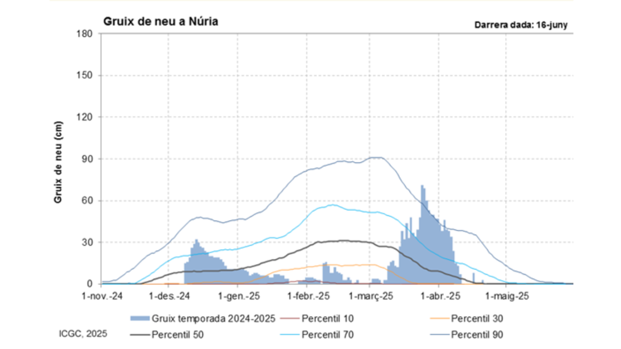 - Al Pirineu Oriental i a la Ribagorçana-Vall Fosca el gruix de neu a terra durant la primavera ha estat per damunt de la mitjana