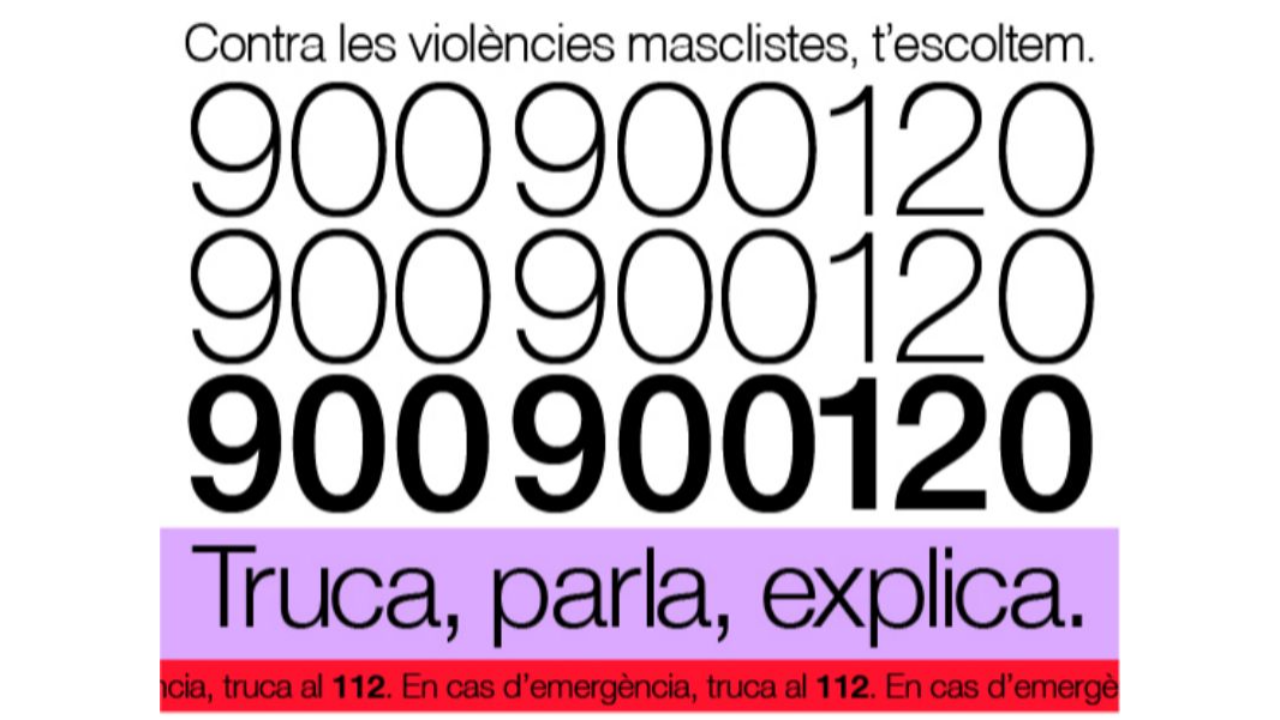 Recordem que davant qualsevol indici o situació de violència masclista cal trucar al telèfon 900 900 120. Hi pot trucar tothom. Tinguem ben present que una trucada pot salvar una vida. Aquesta línia és gratuïta, confidencial, no deixa rastre i opera les 24 hores cada dia de l'any en múltiples idiomes. Ofereix atenció psicològica directa, fa un primer assessorament jurídic i fa derivació, si així se sol·licita, als serveis especialitzats que acompanyen les dones en la seva recuperació.
