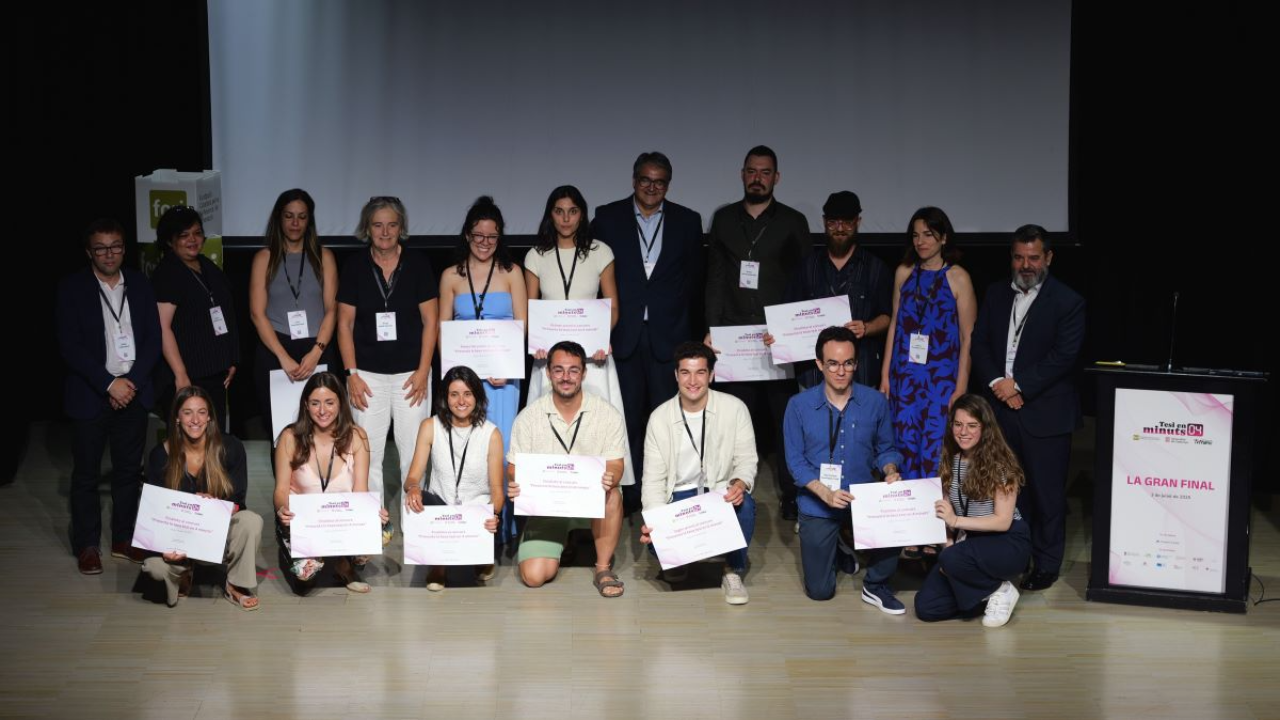 El concurs “Presenta la teva tesi en 4 minuts” planteja el repte comunicatiu d’explicar una tesi doctoral en 4 minuts de forma atractiva i comprensible per al públic general. Els 12 finalistes (7 dones i 5 homes) van superar les proves classificatòries prèvies i finals de les seves pròpies universitats, en què van participar un total de 154 concursants (56% de dones i 44% d’homes).