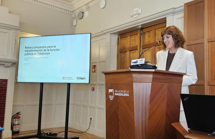 El Govern, de la mà de la secretària d’Administració i Funció Pública, Alicia Corral, ha presentat aquest migdia l’estratègia de reforma de l’Administració i millora dels serveis públics als cursos d’estiu de la Universitat Internacional Menéndez Pelayo (UIMP), a Santander, convidada pel Ministeri per a la Transformació Digital i de l’Administració Pública mitjançant l’Institut Nacional de l’Administració Pública (INAP). Concretament, Corral hi ha pronunciat la ponència Reptes i projectes per a la transformació de la funció pública a Catalunya en el marc del curs Construyendo la Administración Pública del futuro: avances en la hoja de ruta Consenso por una Administración Abierta que organitza l’INAP.