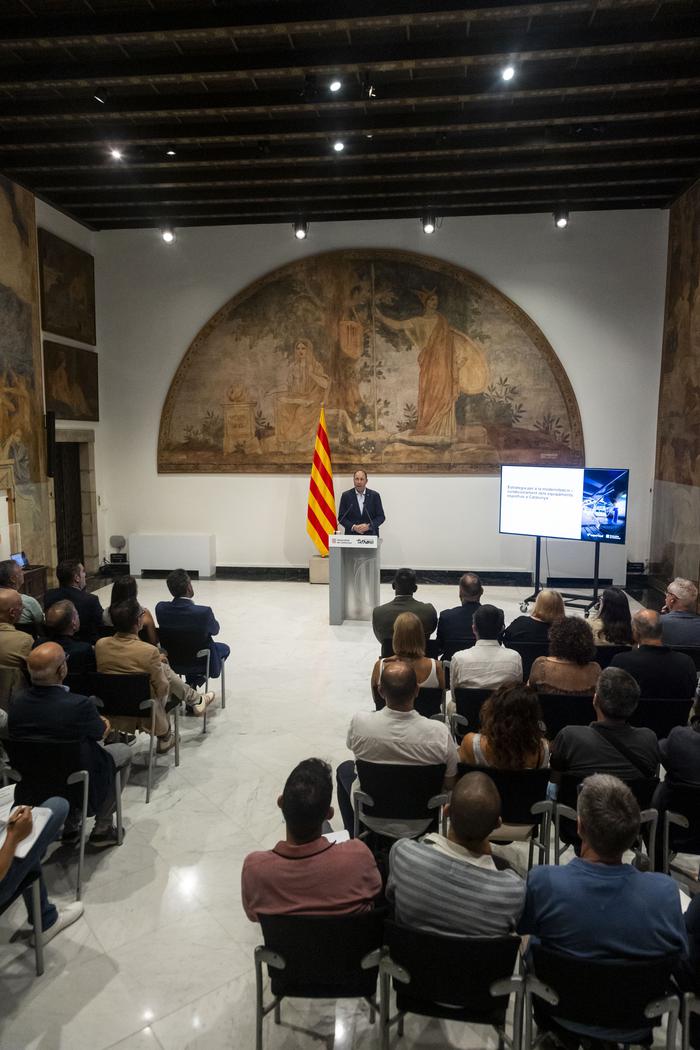 El conseller d’Esports, Berni Álvarez, ha presentat avui al Palau de la Generalitat l’estratègia de suport a la modernització i condicionament de les instal·lacions esportives de Catalunya. Una iniciativa “prioritària pel Departament d’Esports”, dotada amb 120 milions d’euros, amb l’objectiu de garantir la qualitat, la seguretat, l’accessibilitat, l’eficiència i la sostenibilitat de les instal·lacions esportives públiques del país, “moltes de les quals estan envellides i presenten deficiències importants”.