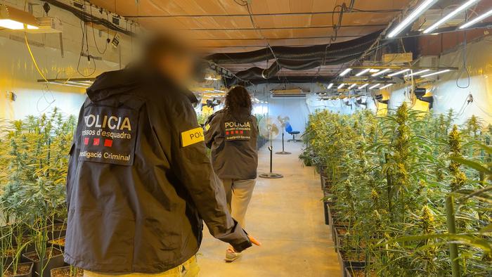 A la nau hi van trobar 700 plantes de marihuana i una infraestructura de kits d’il·luminació, ventiladors, extractors i aparells d’aire condicionat, valorada en més de 60.000 euros, mentre que al pis de Barcelona van localitzar-hi 1.575 euros, 460 grams de marihuana, una pistola d’aire comprimit i un revòlver.