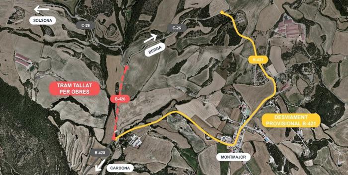 En conseqüència, els vehicles que circulin per la B-420 en direcció a Berga/Solsona, per dirigir-se a la C-26, caldrà que es desviïn per la B-421 per l’interior de Montmajor. Els vehicles que circulin per la C-26 en direcció a Cardona caldrà que es desviïn pel mateix itinerari alternatiu.
