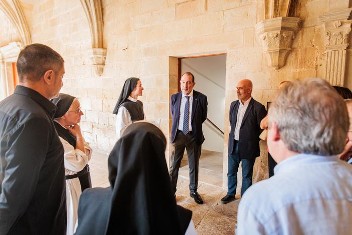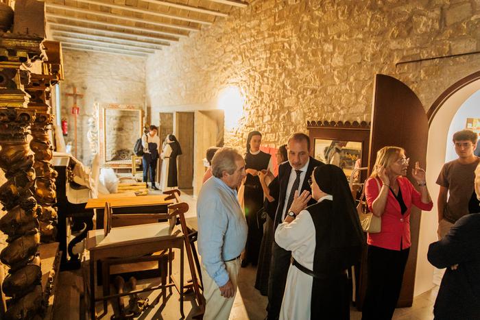 Acompanyat de la priora administradora, la Germana Sara Picher; l’abadessa emèrita, Mare Anna Maria; la Germana Josepa; l'exdelegada del Govern central a Catalunya, Teresa Cunillera; el director general de Patrimoni Cultural, Joaquím Borràs, el director general d’Afers Religiosos, Ramon Bassas, i la directora dels Serveis Territorials del Departament a Lleida, Anna Miranda, Espadaler ha fet un recorregut per la Sala Capitular, la capella, la Farmàcia Medieval i altres espais del Monestir. Posteriorment, el conseller i el seu equip s’han reunit amb les monges del Monestir per tractar temes d’interès comú.
