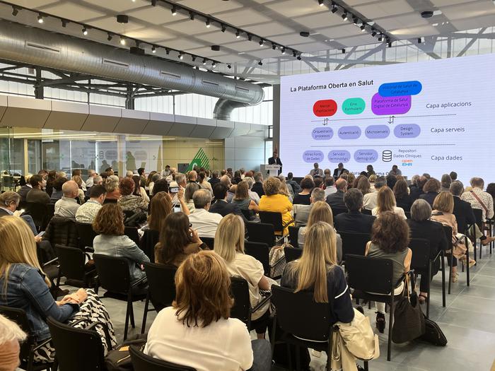 - En la segona taula, dedicada a la plataforma oberta en Salut, hi han participat Demetri Rico, director del CTTI, Jordi Gabaldà, responsable de l’Àrea digital de salut, social i igualtat i feminisme del CTTI; Lluís Valle, coordinador de modelatge del coneixement clínic del Servei Català de la Salut; Cristina Méndez, directora d’Organització del Parc Sanitari Pere Virgili; i Domingo Barrabés, director de tecnologies de la informació de la Corporació de Salut del Maresme i la Selva, que han destacat la importància de construir un ecosistema tecnològic basat en estàndards oberts i interoperables com a element clau per a la innovació i la sostenibilitat.
