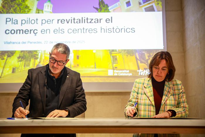 En el marc del Pla de Barris i Viles, la consellera de Territori, Habitatge i Transició Ecològica, Sílvia Paneque, el conseller d’Empresa i Treball, Miquel Sàmper, han signat, aquest dissabte en un acte celebrat a Vilafranca del Penedès, l’acord que permetrà la implantació d’aquesta prova pilot per coordinar les eines de planificació urbanística amb les necessitats del comerç.