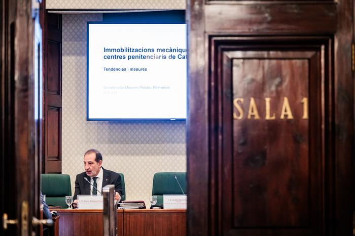 El conseller de Justícia i Qualitat Democràtica, Ramon Espadaler, ha comparegut aquest dijous davant de la Comissió de Justícia al Parlament de Catalunya per abordar la situació relativa a les immobilitzacions mecàniques regimentals en l’àmbit penitenciari i per presentar la resposta del Govern de la Generalitat a l’Informe del Comitè Europeu per a la Prevenció de la Tortura i dels Tractes o Penes Inhumanes o Degradants (CPT).