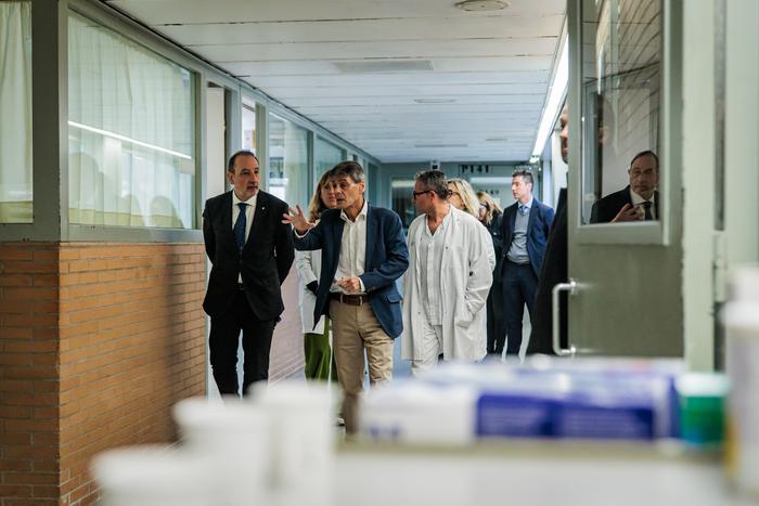 El conseller ha recorregut les instal·lacions del centre, començant per les consultes externes de les diverses especialitats mèdiques, on ha pogut comprovar el funcionament de les visites presencials i telemàtiques que permeten reduir trasllats i millorar l’eficiència del sistema. Posteriorment, ha visitat la planta d’hospitalització, amb més d’una trentena de llits, que inclou espais diferenciats per a homes, dones, joves, interns amb patologies psiquiàtriques i fins i tot una unitat específica per a mares que han infantat.