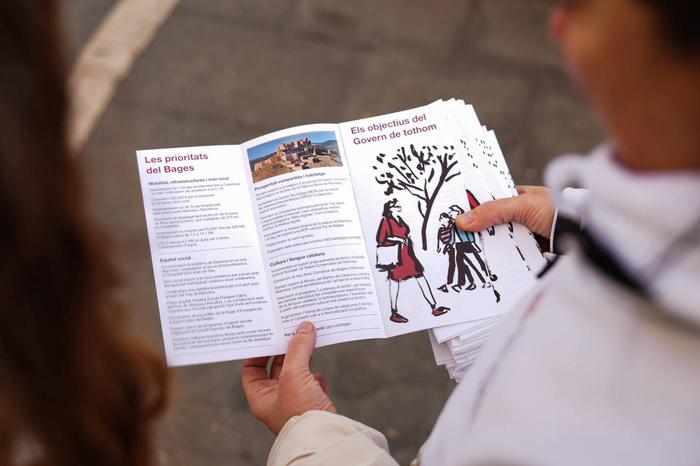 Entre les actuacions que l’executiu té previst dur a terme al Bages, el tríptic que s’ha repartit entre la ciutadania destaca àmbits com la mobilitat, infraestructures i món local (amb la concessió de 700.000 euros per a inversions en la xarxa viària rural o amb l’increment d’un 30 % les freqüències dels busos entre Manresa i Barcelona), l’equitat social (amb l’ampliació de l’Institut Escola Pompeu Fabra, del Pont de Vilomara i Rocafort, i, en col·laboració amb l’Ajuntament, de l’Escola Agrupació Sant Jordi, de Fonollosa) o la prosperitat compartida i habitatge (amb el programa “Més digitals”, que forma la ciutadania en l’ús segur i responsable d’internet i dels dispositius mòbils, com a mesura contra la bretxa digital, o amb l’impuls per la modernització de la séquia de Manresa i el reg de suport a la DOP vitícola Pla de Bages).