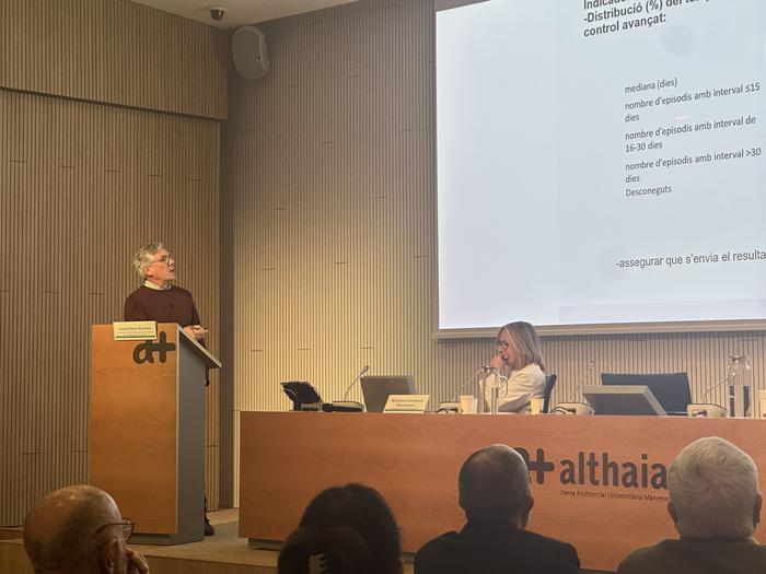 La sessió ha estat presentada i moderada per la Dra. Montserrat Domènech, i ha comptat amb la intervenció de Josep Alfons Espinàs, representant del Pla Director d’Oncologia de Catalunya, que ha situat l’experiència territorial dins del marc general del país i ha aportat una visió estratègica sobre l’estat actual i el futur del cribratge de càncer de mama a Catalunya. La seva intervenció ha permès entendre com els avenços científics, tecnològics i organitzatius marcaran el desenvolupament del programa els pròxims anys.