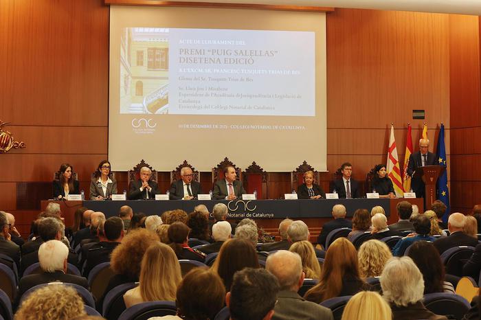 El conseller de Justícia i Qualitat Democràtica, Ramon Espadaler, ha encapçalat aquesta tarda el lliurament de la dissetena edició del Premi Puig Salellas, que s’ha lliurat a Francesc Tusquets Trias de Bes. Es tracta del màxim guardó atorgat anualment pel Col·legi Notarial de Catalunya a una persona o institució que a Catalunya hagi acreditat una trajectòria destacada d’estudi, investigació, creació, docència o aplicació de Dret.