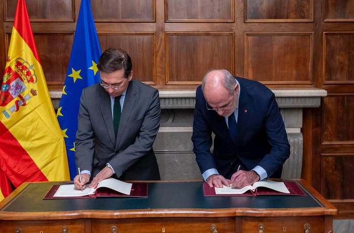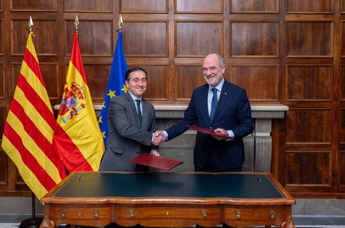 El conseller i el ministre d'Afers Exteriors, Unió Europea i Cooperació, José Manuel Albares, van segellar l’acord aquest dilluns a Madrid, amb la signatura de dos protocols d’entesa, amb versions en català i en castellà: “Un gest prou significatiu”, ha assenyalat Duch.