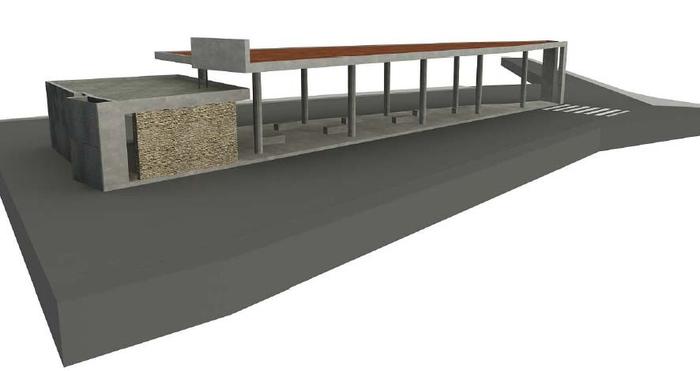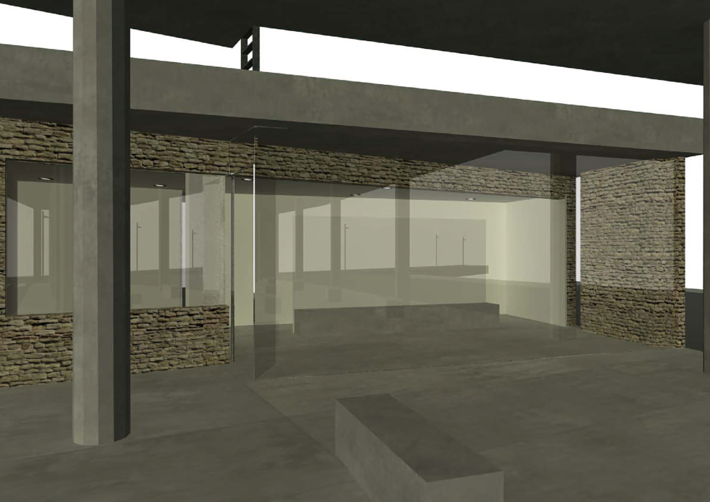 La façana exterior de l’edifici serà de pedra, i l’accés es realitzarà per una porta automàtica integrada a una estructura de vidre que tanca l’edifici.