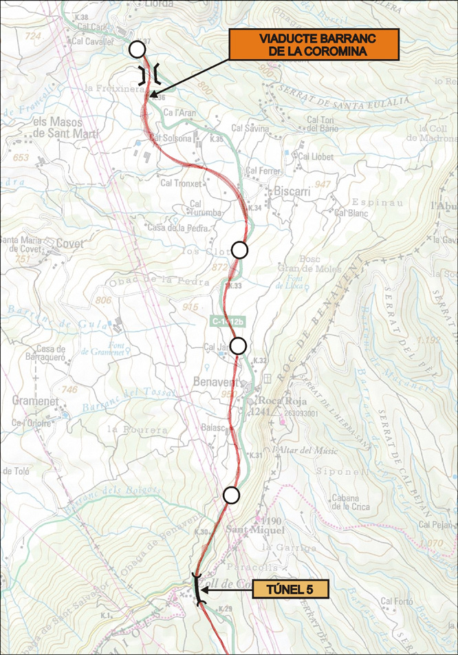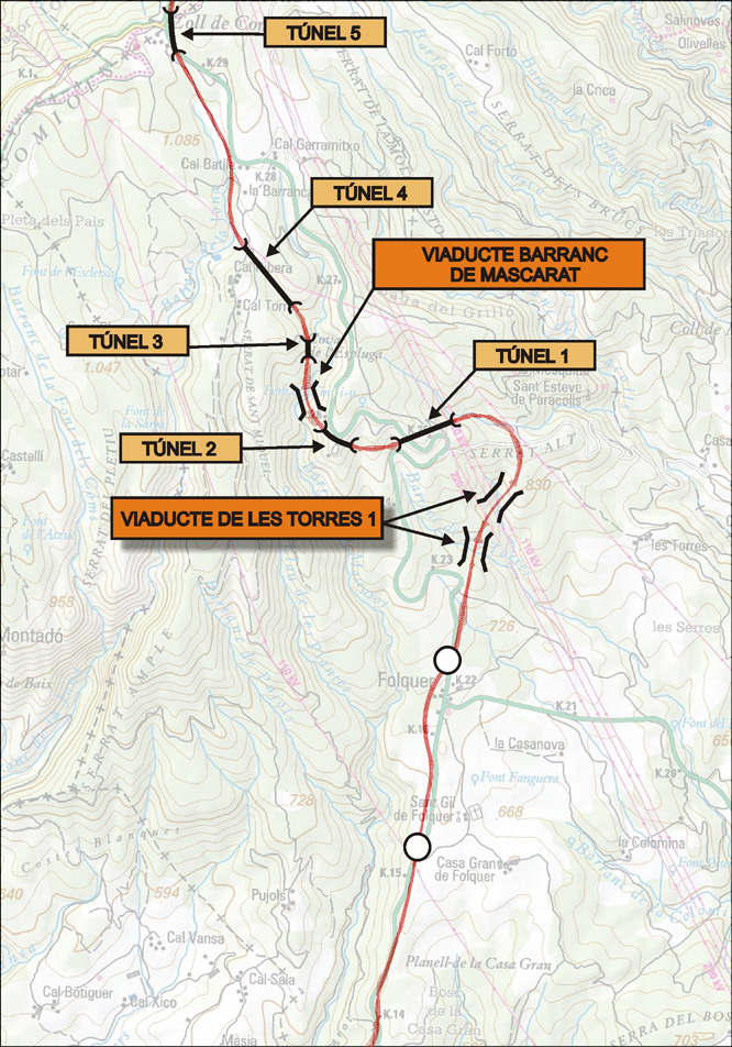 - La nova carretera tindrà una longitud de 29,4 quilòmetres i inclourà 5 túnels, que sumen 1,4 quilòmetres, i 5 viaductes, amb una longitud d’1,5 quilòmetres
