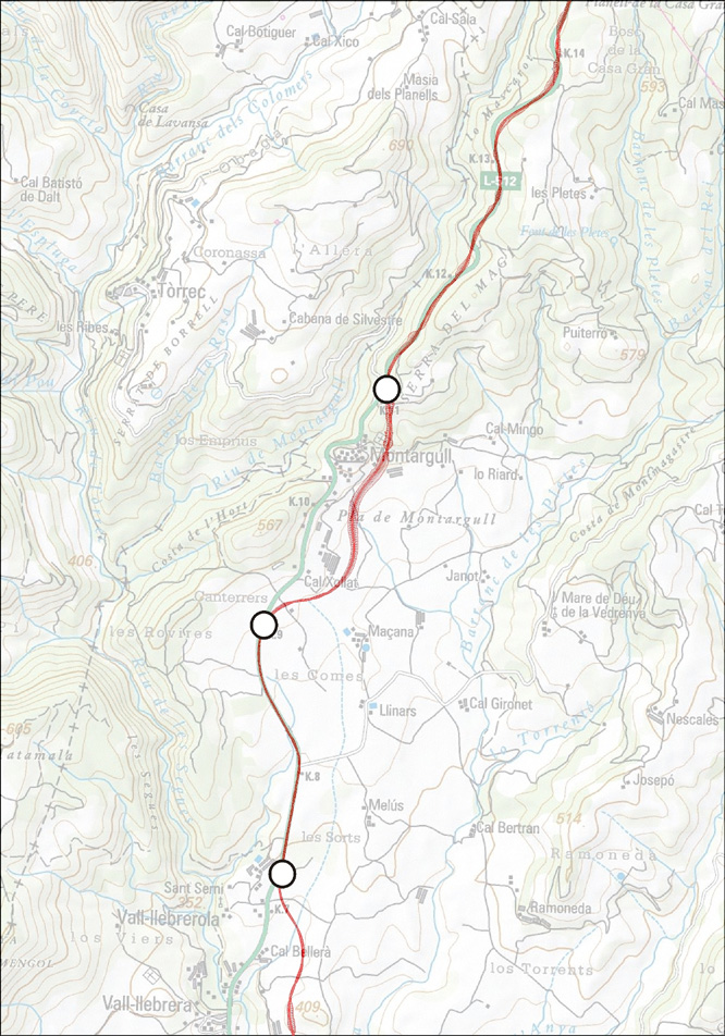 Vall-llebrera – Folquer (9 quilòmetres): El traçat segueix bàsicament el corredor de pas de l’L-512. En un primer tram d’1,7 quilòmetres, s’aprofita la carretera existent. A partir d’aquest punt, se separa de l’actual L-512 i es forma la variant que permetrà evitar el pas per l’interior de Montargull. Aquesta variant tindrà una longitud de 2,1 quilòmetres i discorrerà per l’est de la població. Posteriorment, la nova carretera millora l’itinerari actual amb petites variants de traçat, fins a Folquer, on també es preveu una variant per evitar l’interior del nucli, d’1,4 quilòmetres de longitud. En els punts d’inici i final de les variants de Montargull i de Folquer, es formaran interseccions.