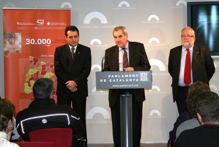 - El conseller d’Educació, Ernest Maragall, i els presidents de les entitats municipalistes, Manuel Bustos, de la FMC i Salvador Esteve de l’ACM, han lliurat l’informe del compliment de la Llei 5/2004 al President del Parlament de Catalunya