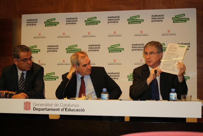 El conseller d’Educació, Ernest Maragall, acompanyat pel president del consell superior d’avaluació del sistema educatiu, Joaquim Prats, i el director general d’educació bàsica i batxillerat del Departament d’Educació, Jaume Graells, han presentat aquest matí l’avançament de resultats de la prova d’avaluació de sisè de primària que es va dur a terme els passats 6 i 13 de maig en 2083 centres educatius públics, privats-concertats i privats.