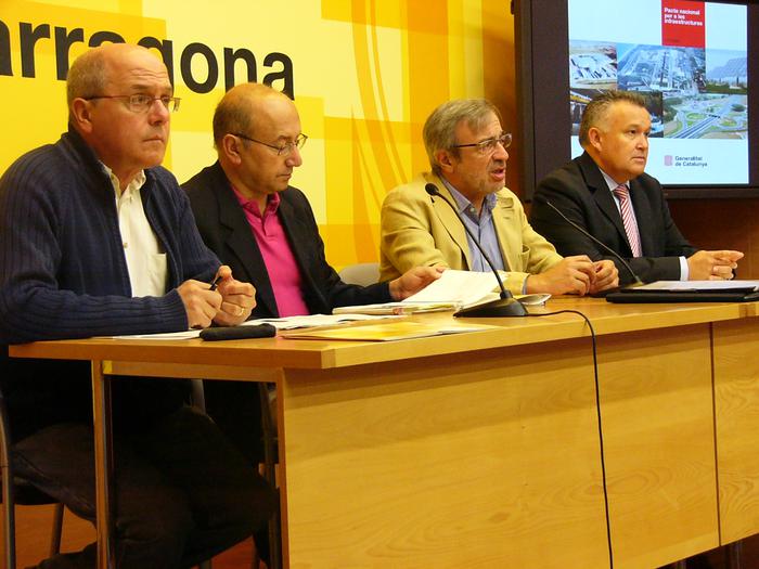 El delegat del Govern al Camp de Tarragona, Xavier Sabaté, i els director territorials de Política Territorial i Obres Públiques, Joaquim Margalef; Medi Ambient i Habitatge, Josep Lluís Pau, i Agricultura, Alimentació i Acció Rural, Xavier Vicens, han presentat aquest matí les actuacions territorials incloses en el Pacte Nacional per a les Infraestructures que, en paraules del delegat, "són l'impuls decisiu per a la transformació del model econòmic tot assegurant un creixement més sostenible i equilibrat al Camp de Tarragona".