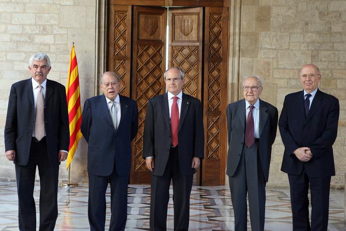 Els expresidents de la Generalitat Jordi Pujol i Pasqual Maragall, i els expresidents del Parlament Joan Rigol i Heribert Barrera s'han reunit aquesta tarda amb el president José Montilla en un gest de suport institucional a la negociació del nou model de finançament que marca l'Estatut.