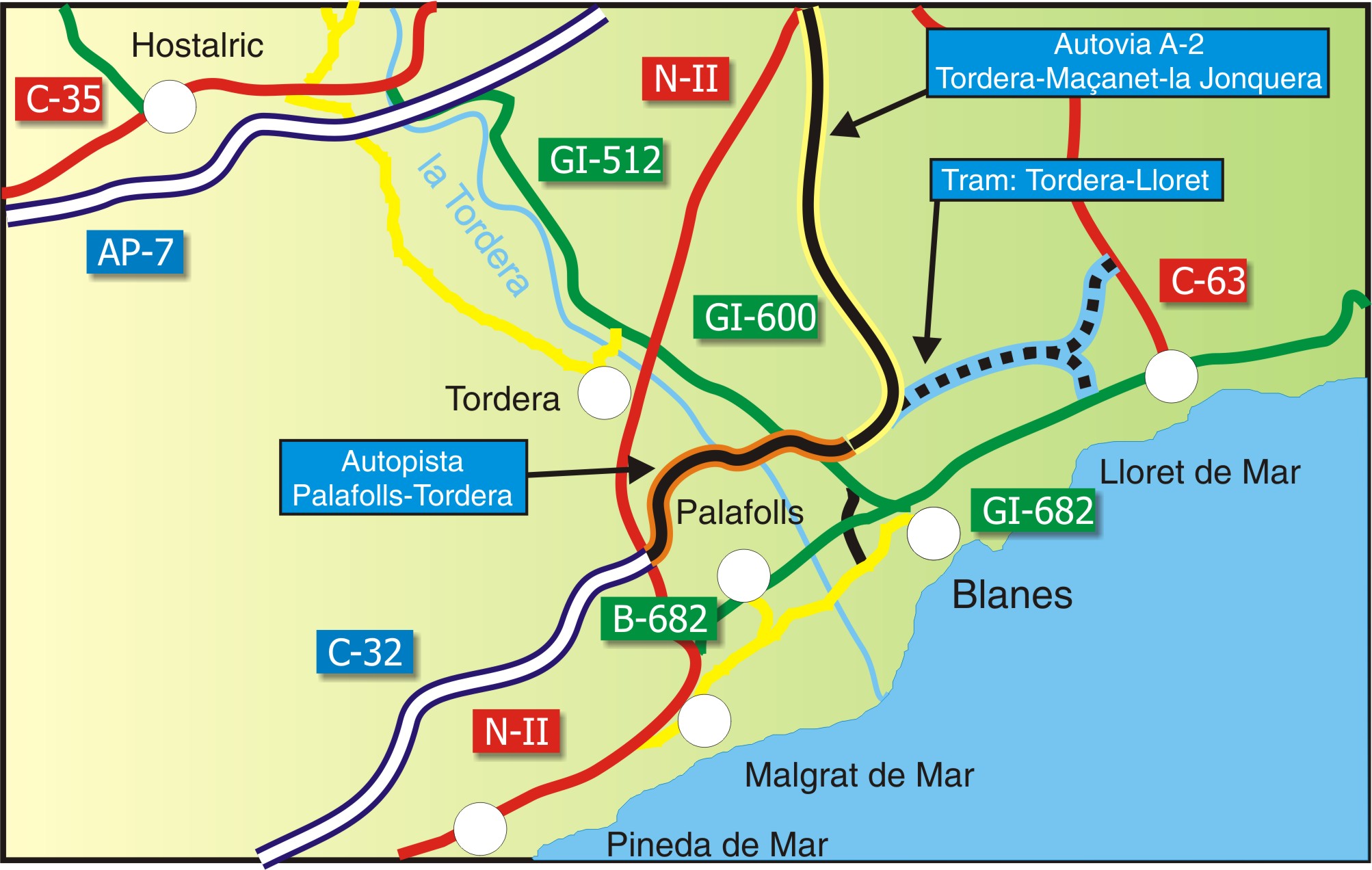 Acesa, actual concessionària de la C-32 entre Montgat i Palafolls, construirà el nou tram, que serà lliure de peatge per als moviments interns, és a dir, per als vehicles que recorrin tan sols el tram comprès entre l’enllaç de la carretera N-II i l’enllaç de la GI-600.