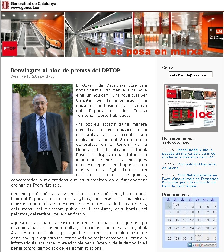 El Departament de Política Territorial i Obres Públiques ha posat en marxa una nova eina dirigida principalment als mitjans de comunicació. El bloc utilitza els recursos de la xarxa per tal d’informar sobre les actuacions del Govern en matèria d’Infraestructures, Mobilitat i Planificació Territorial.