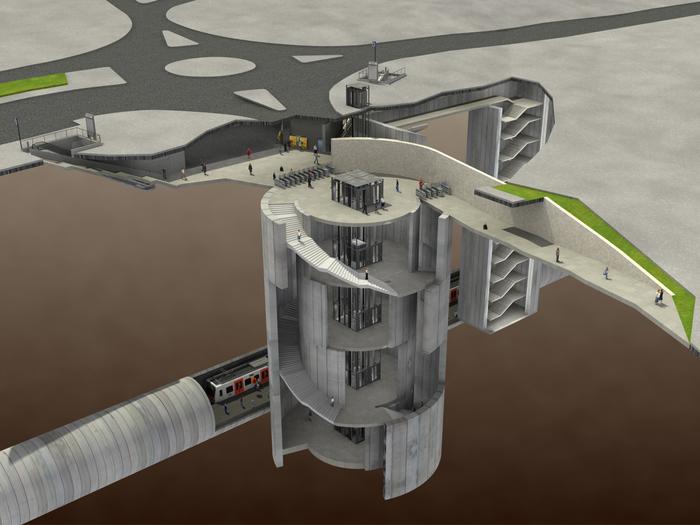 - Universitats: se situarà a l’entorn de la zona universitària del Campus Nord, entre l’avinguda d’Esplugues i el carrer del Gran Capità. Es projecta amb una estructura circular a 47 metres de profunditat. Disposarà de 3 accessos, dos dels quals se situaran a l’avinguda d’Esplugues i l’altre al carrer del Gran Capità.