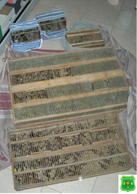 El cos d’Agents Rurals del Departament de Medi Ambient i Habitatge va intervenir, ahir dijous a Badalona, 366 ocells de cant de les espècies Cadernera, Verdum, Passarell comú i Pinsà comú, un trobat i una terrerola vulgar, totes protegides per la normativa vigent, sent la terrerola, a més, una espècie amenaçada amb la categoria de “en perill”, segons l’esborrany de catàleg d’espècies amenaçades de Catalunya.