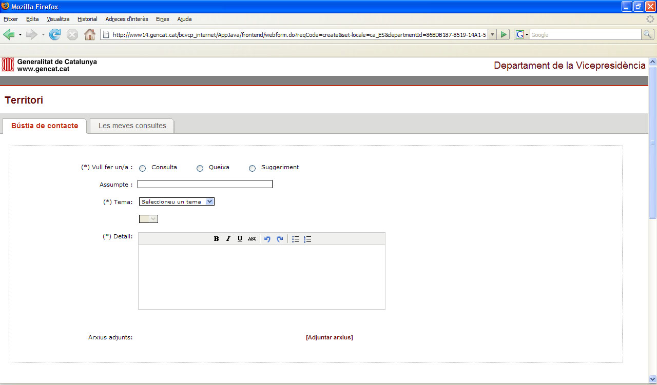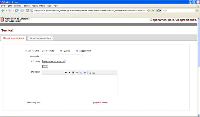 Us adjuntem dues captures de pantalla del web. Una és de la portada i l'altra de la bústia de comunicació.