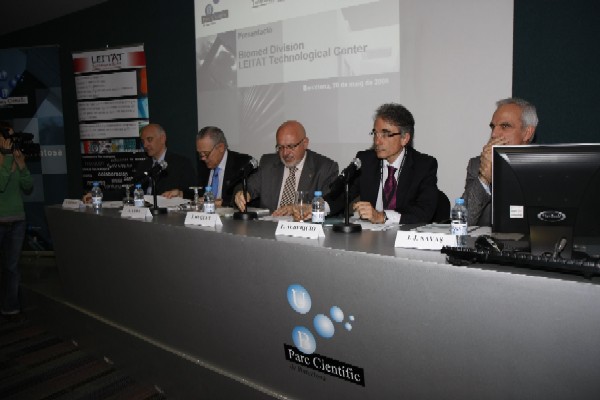 El conseller d’Innovació, Universitats i Empresa, Josep Huguet, el president de LEITAT Technological Center, Eusebi Cima, i el director general del Parc Científic de Barcelona, Fernando Albericio, han presentat avui de forma conjunta al Parc Científic de Barcelona la nova divisió de biomedicina de LEITAT, anomenada Biomed Division, que centrarà les seves activitats en l’àmbit de la recerca oncològica i està formada per un grup de vuit científics, tots ells ex-components del Laboratori de Bioinvestigació que la multinacional farmacèutica Merck va tancar a finals de l’any passat al Parc.
