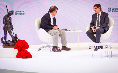 - El cap de l’Executiu ha dialogat amb l’escriptor Javier Cercas, en el marc de la jornada “Les veus de Sant Jordi”, al Palau de la Generalitat