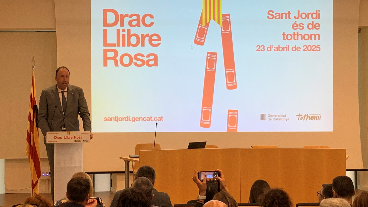 - El lema de la campanya d’enguany és ‘Sant Jordi és de tothom’ i reivindica els elements més emblemàtics de la festa, el llibre, la rosa i el drac
