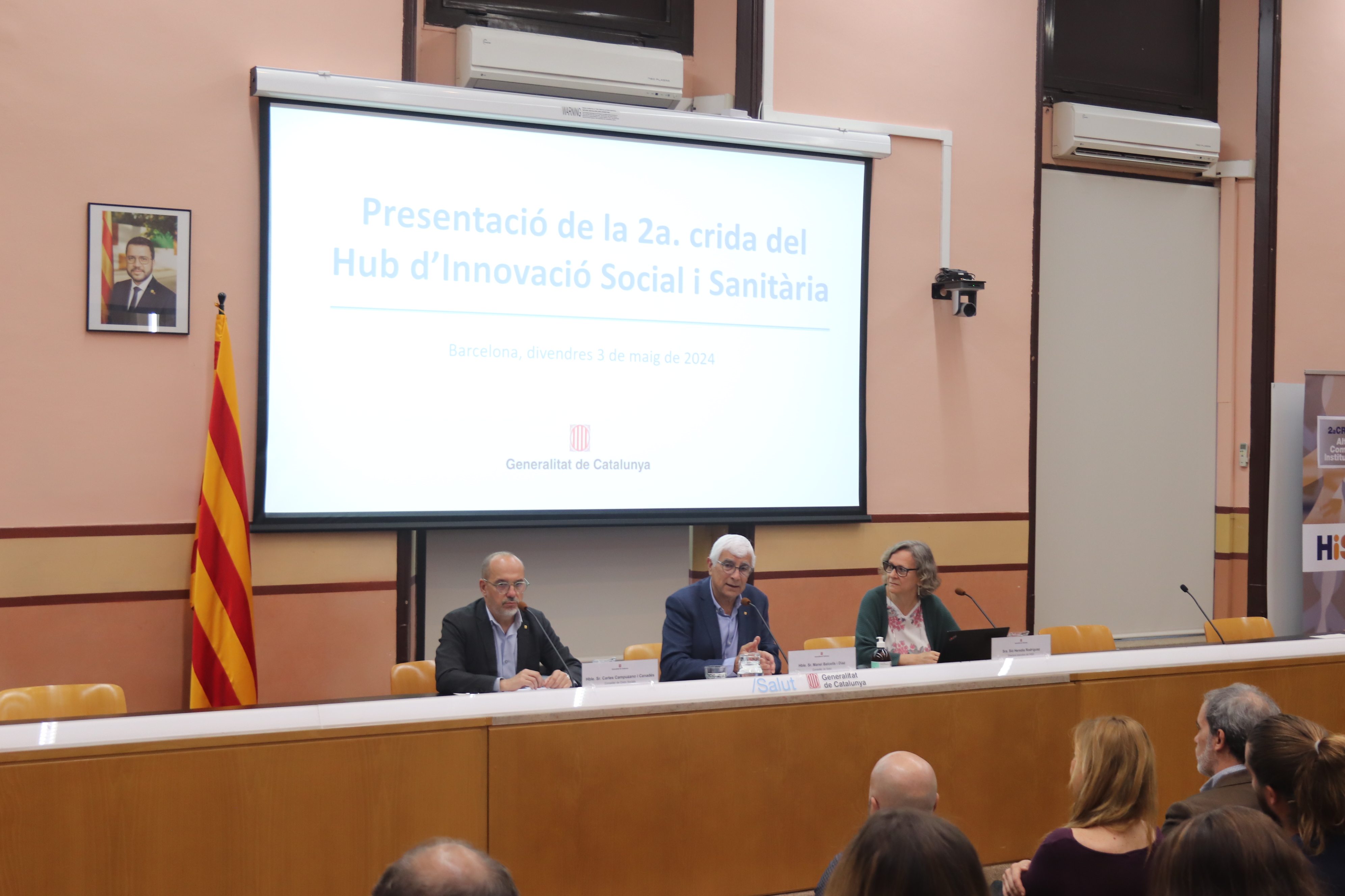 El conseller de Salut, Manel Balcells i Díaz, i el conseller de Drets Socials, Carles Campuzano i Canadés, han presentat aquest matí la segona crida del Hub d’Innovació Social i Sanitària (HiSS), un instrument públic del sistema català de salut i de la xarxa pública de serveis socials. L’objectiu d’aquest hub és impulsar projectes innovadors que ajudin a millorar la qualitat de vida de les persones amb necessitats d’atenció social i sanitària i tenir un impacte real en la ciutadania.