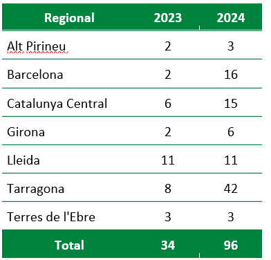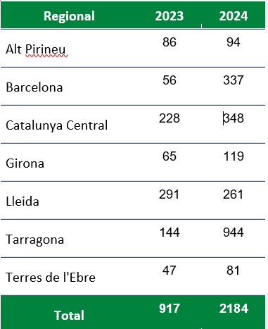 Les dades per àrees regionals són les següents pel que fa a nombre de xerrades impartides: