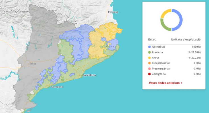 També entren en vigor els canvis a l’aqüífer del Baix Ter, que torna a l’escenari de normalitat, mentre que l’aqüífer del Fluvià Muga dona un pas més en la desescalada i passa de l’excepcionalitat a l’alerta.