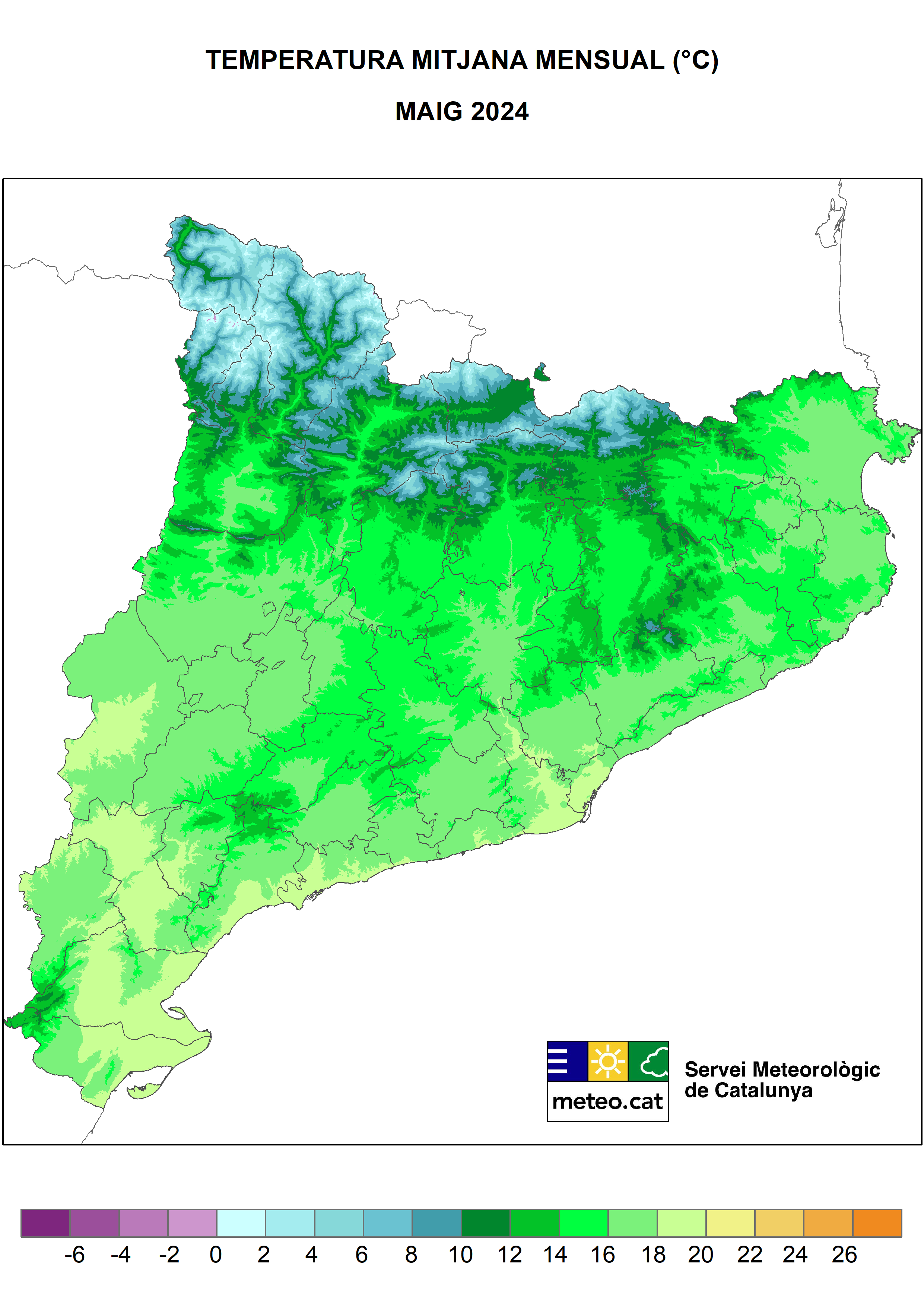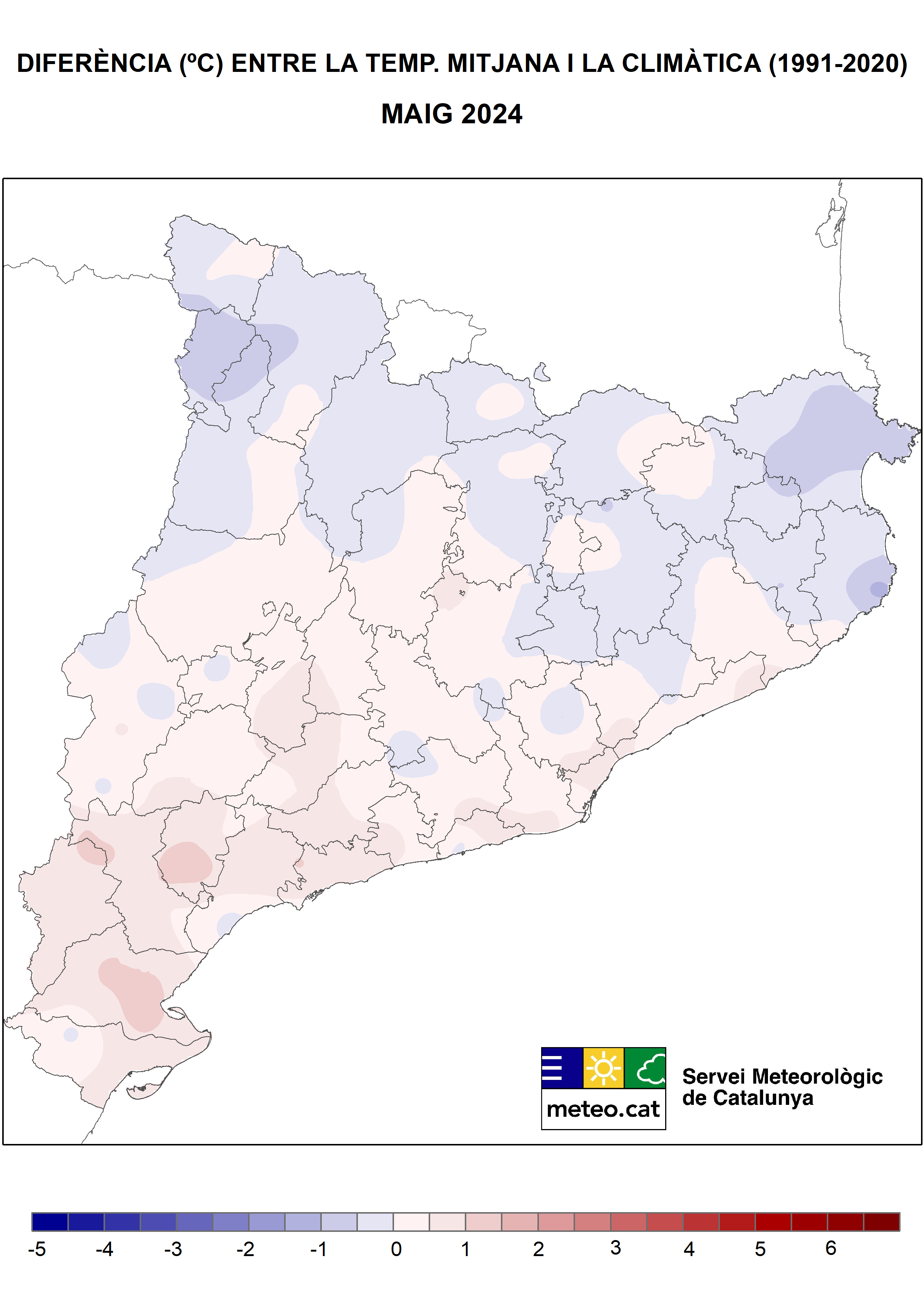 El maig ha estat termomètricament normal a Catalunya, amb lleugeres anomalies negatives al nord de Catalunya i positives a l'extrem sud