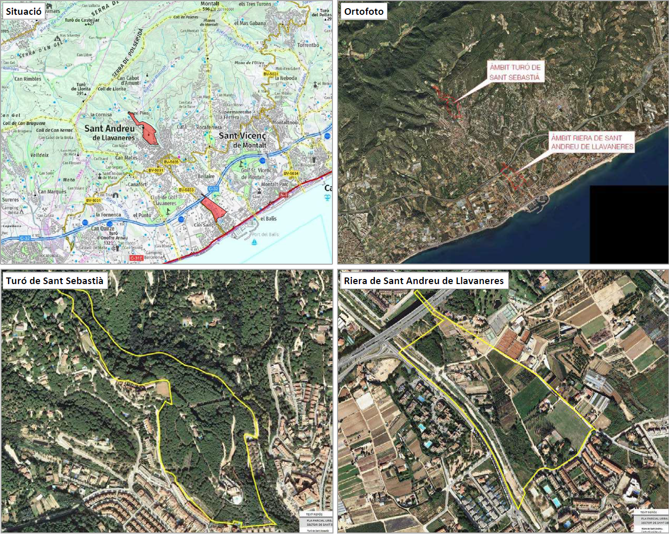 Es tracta d’un sector discontinu d’unes 30 Ha de superfície total. Estan repartides per meitats entre l’àmbit del Turó de Sant Sebastià (part alta del nucli antic del municipi) i l’àmbit de la Riera de Sant Andreu (part baixa del municipi, entre l’autopista C-32 i la costa). El 79,4% de l’àrea total del sector es destinarà a sòl de sistemes públics i, concretament el 52,57% de la seva superfície, anirà destinada a sistemes d’espais lliures públics distribuïts entre ambdós àmbits.