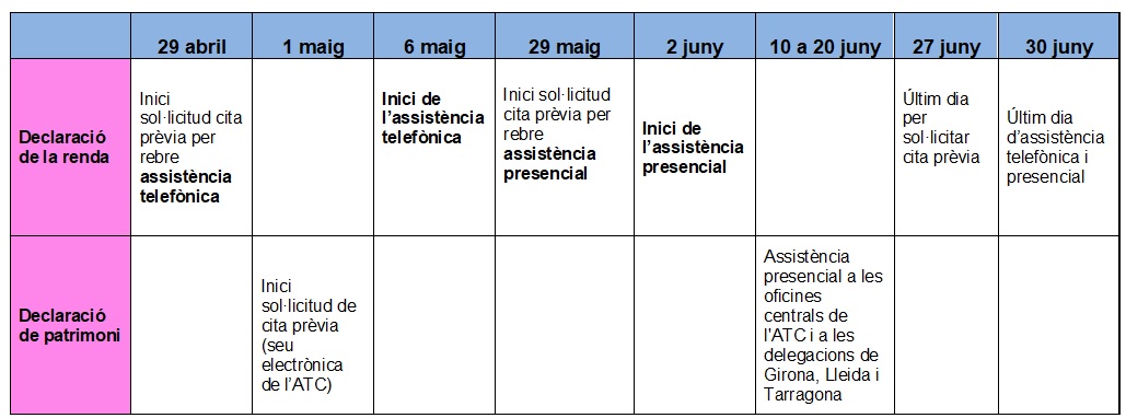 - A partir de demà, 29 de maig, els contribuents que vulguin ser atesos en persona a l’hora de fer la declaració, poden demanar dia i hora a través de l’app i del web de l’ATC o al telèfon 901 22 33 44